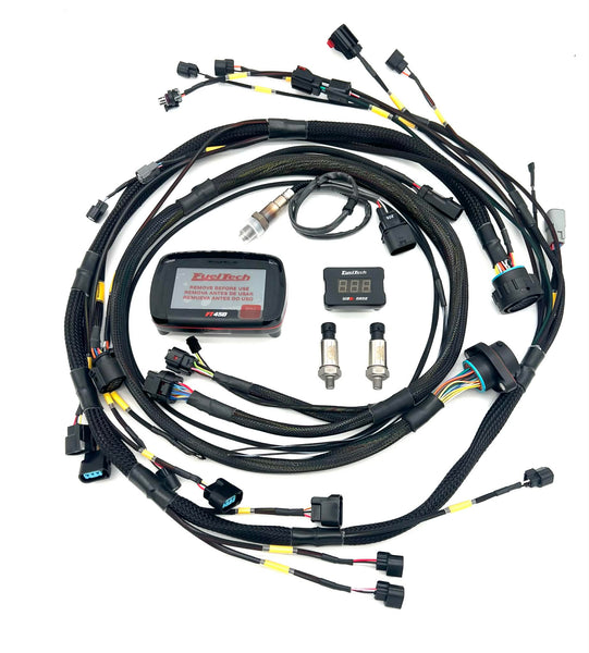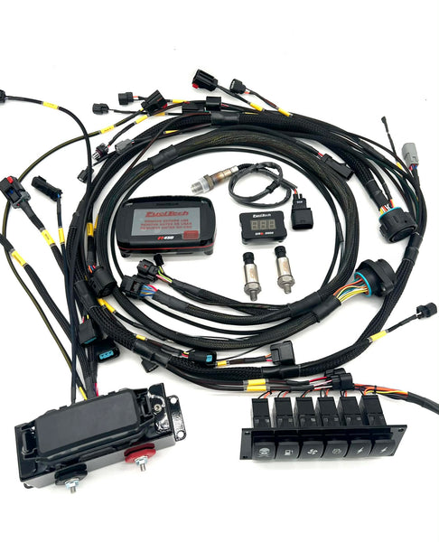 (1) JWT Fueltech FT450 Engine Harness with Switch Panel and Fuse Box (this fits our MOST RECENT current fuse box and switch panels, so if you already have our most recent switch panel and fuse box select NO in the dropdown menu for that, message us a picture of the end of your current setup if not sure)